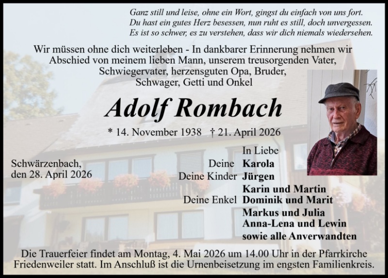 geboren am 14. November 1938 in Raitenbuch jetzt Lenzkirch