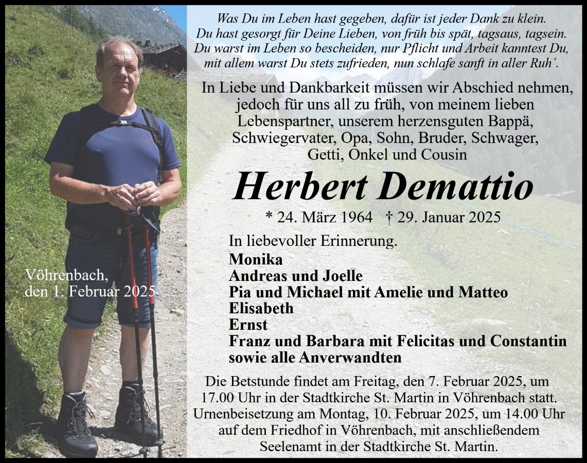 Herbert Demattiogestorben am 29. Januar 2025