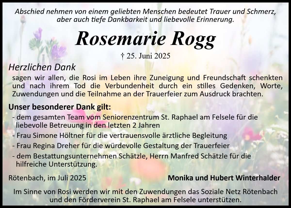 Wir werden Rosi als liebe Nachbarin in Erinnerung behalten.