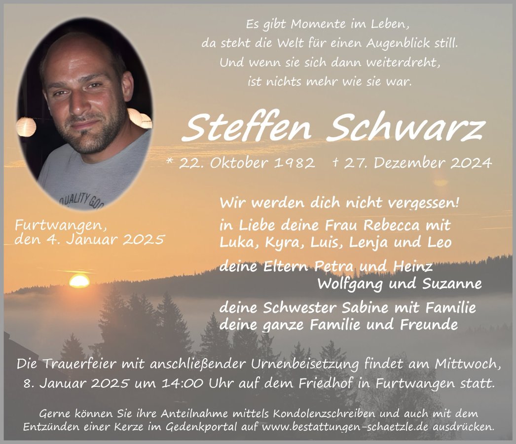 als wir von Steffens Tod gehört haben, waren wir so traurig und sofort kamen dann Erinnerungen an die früheren Bergwachtdienste, die Mittagessen, Weihnachtsfeiern und vieles mehr....und die schönen Gedanken daran haben uns dann auch wieder ein klein wenig lächeln lassen.
